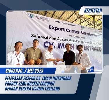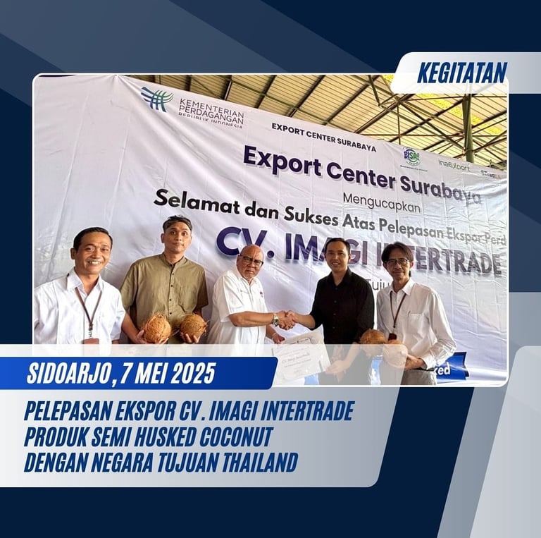 CV IMAGI Intertrade adalah perusahaan eksportir yang berbasis di Indonesia, yang secara khusus bergerak di bidang perdagangan dan ekspor produk-produk kelapa. Didirikan pada tahun 2019, perusahaan kami lahir dari semangat untuk memperkenalkan potensi besar hasil bumi Indonesia — khususnya kelapa — ke panggung internasional.